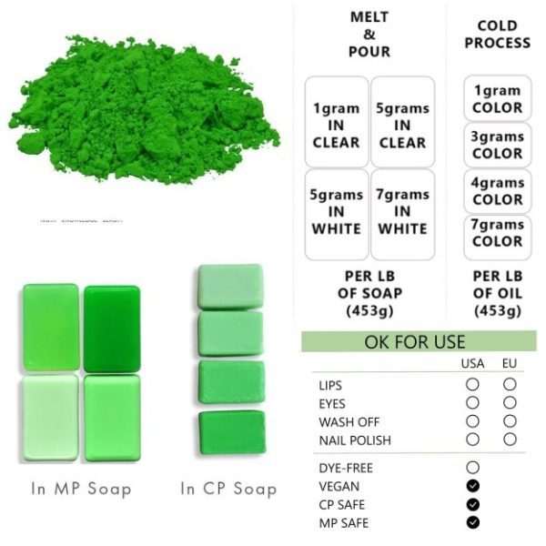 Solvent Yellow 172, Solvent Green 5 (59075), Pigment Green 7 (74260),Fluorescent Brightener 184, Resin.